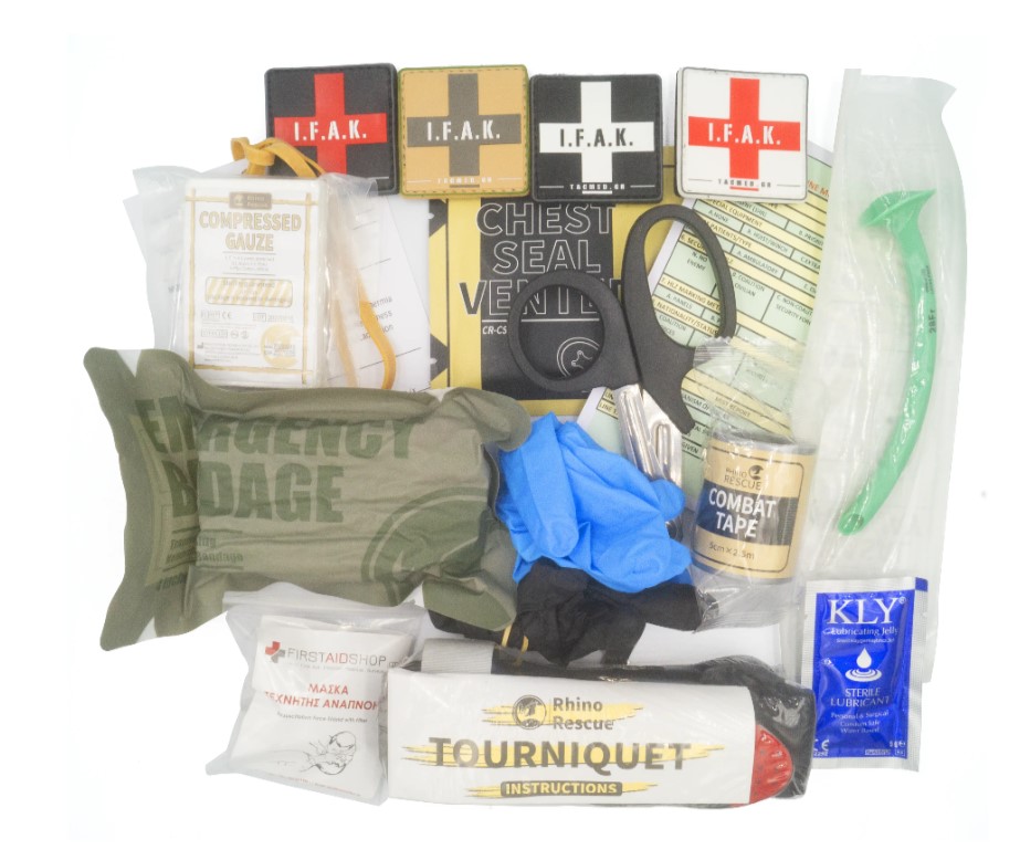 Το παραπάνω Ατομικό Κιτ Α’ Βοηθειών Μάχης (IFAK), δεν περιλαμβάνει το τσαντάκι. Είναι μόνο το περιεχόμενο. Συνδυάστε το με ένα από τα προτεινόμενα τσαντάκια IFAK που θα σας δώσει τη δυνατότητα να το προσαρμόσετε καλύτερα στον εξοπλισμός σας.