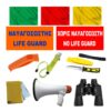 1x Σημαία Ναυαγοσώστη, χρώματος πορτοκαλί, διαστάσεων 80Χ100εκ., με την ένδειξη ΝΑΥΑΓΟΣΩΣΤΗΣ και, κάτωθεν αυτής, την ένδειξη LIFE GUARD, μπλε απόχρωσης