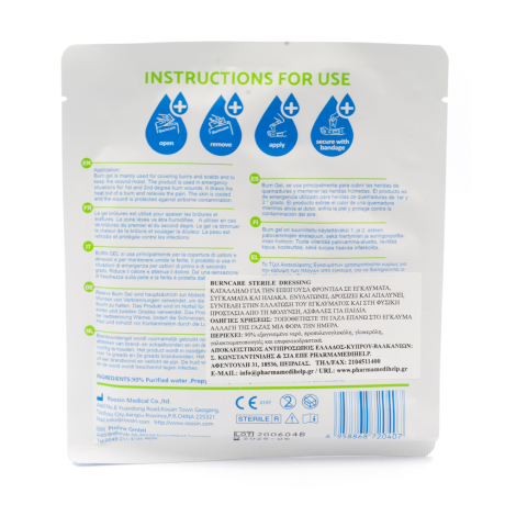 Το Burncare επίθεμα εγκαυμάτων 10 x 10 cm χρησιμοποιείται σε καταστάσεις έκτακτης ανάγκης για εγκαύματα 1ου και 2ου βαθμού.